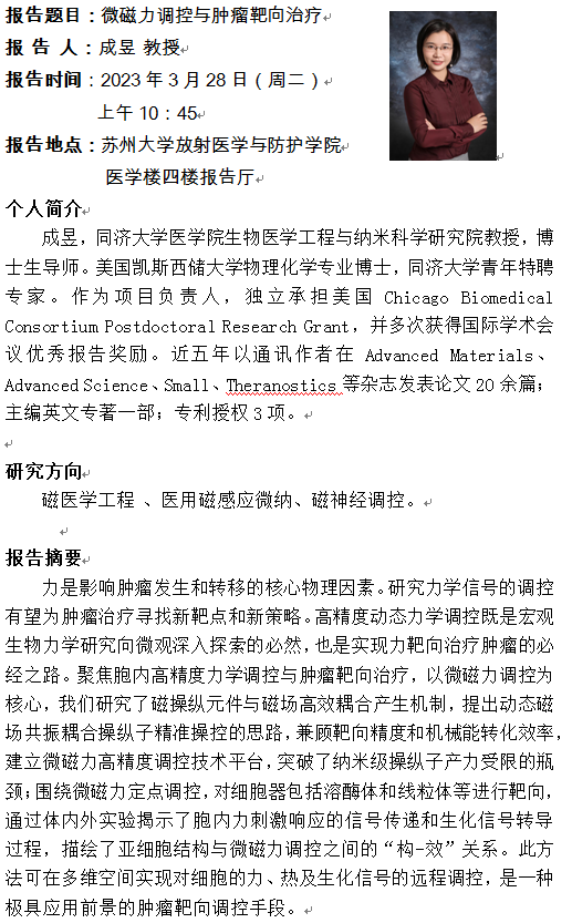 先进放射医学论坛(2023年第13期)——微磁力调控与肿瘤靶向治疗