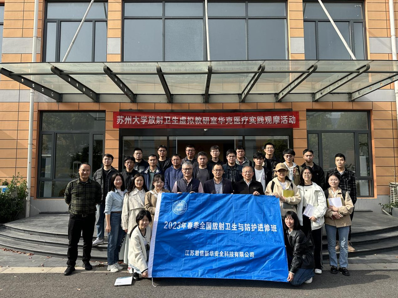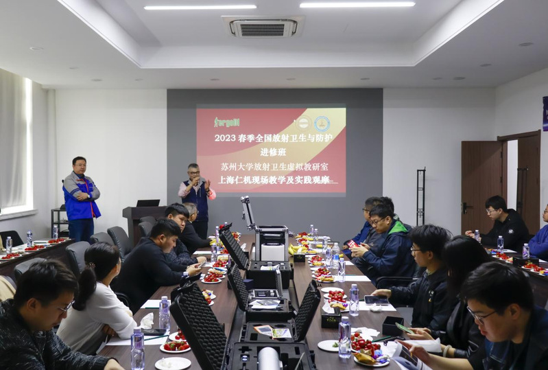2023年4月15日,苏州大学放射卫生学虚拟教研室第二次线下教研活动分别在上海仁机仪器仪表有限公司和华克医疗(昆山)顺利举行,教研活动围绕现场教学主题展开。本次活动由虚拟教研室负责人涂彧教授、万骏教授带队,苏州大学2023年春季全国放射卫生与防护进修班全体成员和2019级放射医学专业部分学生代表共同参与。线下教研活动分别由仁机公司董事徐一鹤老师和华克医疗总监张磊老师主持。