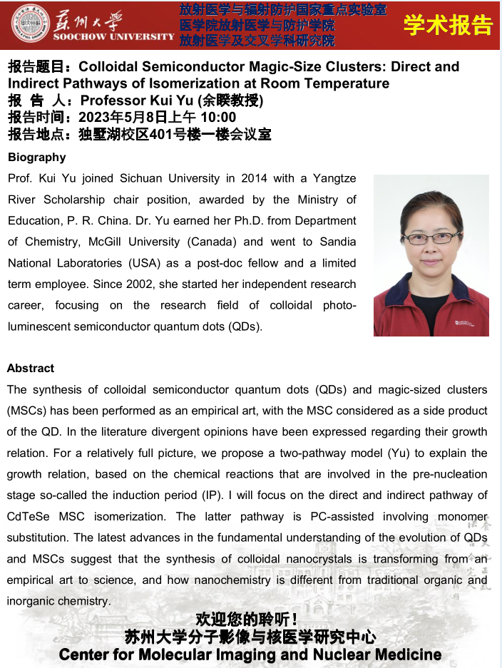 先进放射医学论坛(2023年第21期)——Colloidal Semiconductor Magic-Size Clusters: Direct and Indirect Pathways of Isomerization at Room Temperature