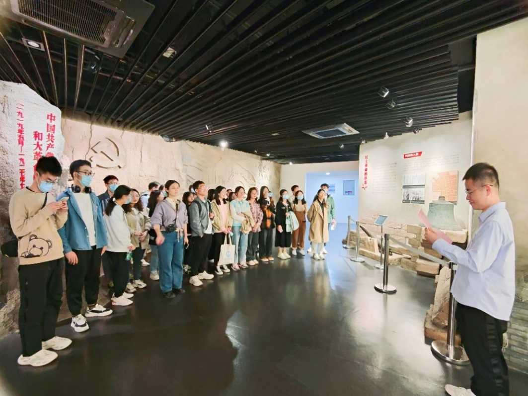参观完基本陈列之后,在“学生讲学生听环节”,博士党员顾黎明为支部成员讲述了受进步思想影响,走上革命道路,不幸被捕,遭受酷刑,一言不发,从容赴死的陈叔璇烈士短暂而不平凡的一生;预备党员徐晨安对日本租界界碑进行了微讲解,这是近代中国遭受列强入侵、进入半殖民地半封建社会的产物,也是近代苏州人民被压迫,被剥削的象征,它时刻警醒世人勿忘国耻;支部副书记郑青领学《习近平新时代中国特色社会主义思想专题摘编》部分内容,当代中国青年生逢盛世,肩负重任,必须守初心、担使命、立大志、锻本领,让党和人民的事业在我们手中薪火相传,让民族复兴的伟业在我们这一代得以实现!