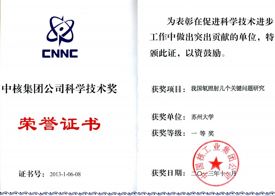 中核集团公司科学技术一等奖