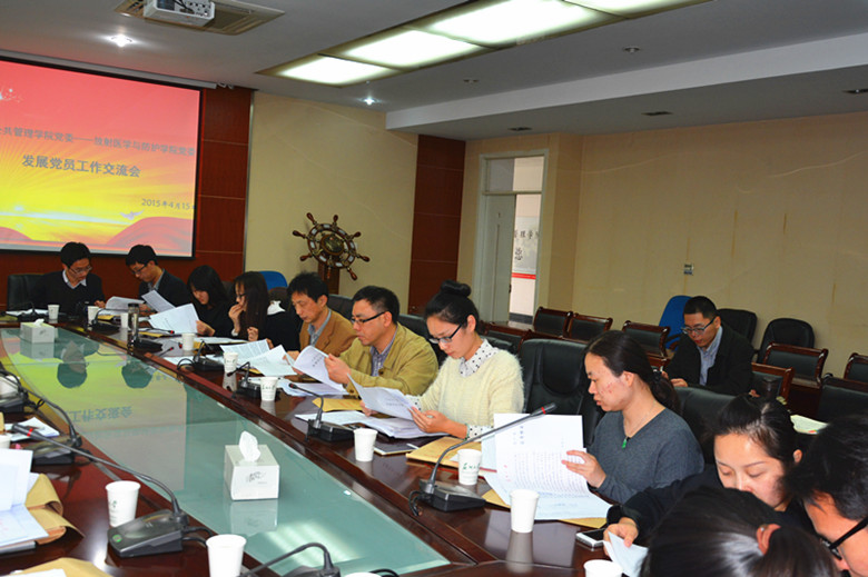 为切实提高党员发展工作质量,学习借鉴党员发展工作中的新经验、好做法,根据学校党委组织部的要求,4月15日下午,政治与公共管理学院党委与医学部放射医学与防护学院党委在606#317会议室召开发展党员工作交流座谈会。放射医学与防护学院的党委书记曹建平教授、教工第一党支部书记刘芬菊教授、研究生思政辅导员朱巍老师、党务秘书彭蓉老师,政治与公共管理学院党委书记张才君、党委副书记邢光晟、本科生党总支书记谢燕兰、研究生党总支书记单杰等相关老师、学生党支部书记代表参加了交流会。交流会由张才君主持。