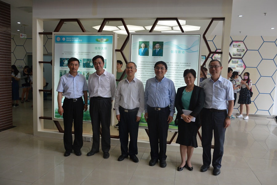 曹建平书记汇报了学院的发展历史、学科建设、人才培养,以及国家重点实验室建设意义、建设内容和发展规划等。随后,周为号副部长一行参观了分子影像与核医学研究中心实验室。接着,调研团实地走访了学院党员之家,着重了解了学院党建工作、党员教师占比以及党员教师在科研创新中发挥党员先锋模范带头作用的情况等。