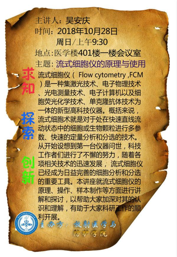 放医学院2018年秋季第二课堂预告(流式细胞仪的原理与使用)