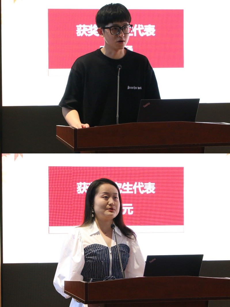 2019级本科生周纾涵、2022级博士研究生薛惠元两位同学作为获奖学生代表发言。他们表达了对学院各位老师和企业领导的感谢,表示获得该荣誉是对自己的肯定、激励与鼓舞。回顾过往,辛勤付出习得的知识显得格外珍贵;展望未来,科研之路仍应重任在肩,应时时自省、突破创新、砥砺前行、踏实奋进以取得更加优异的成绩。