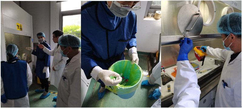 演练首先模拟了放射性工作人员做实验过程中,中途离开,但是由于其他同学误将放射源当成放射性废物进行处理,造成放射源丢失的事故。