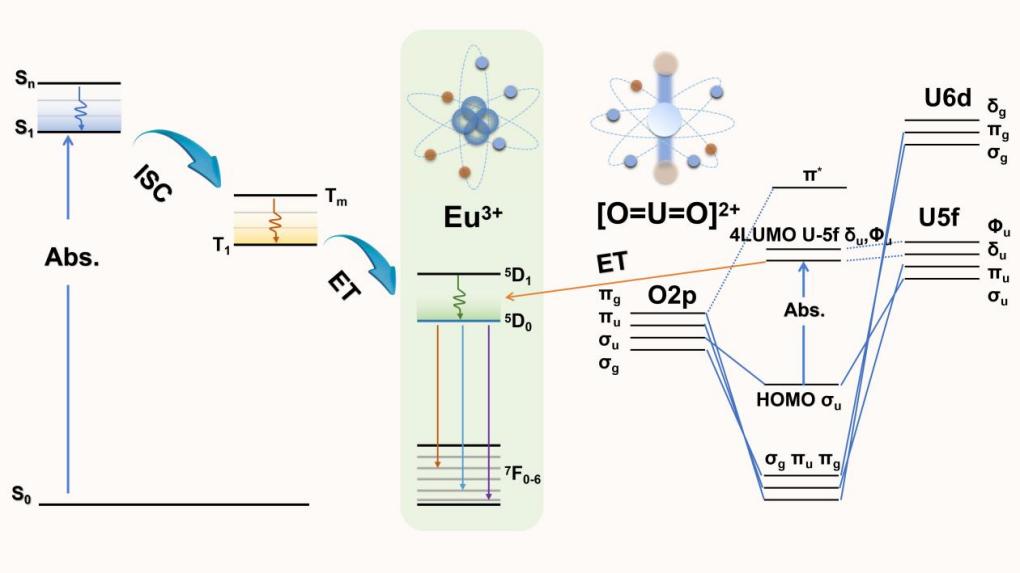 图1. 铀酰离子敏化铕离子发光机理示意图
