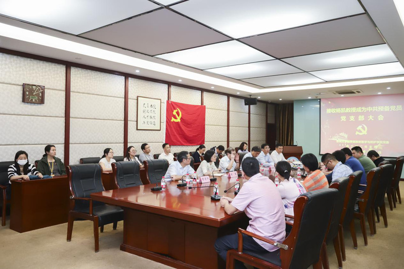 杨凯同志在发言中表示,成为预备党员后,会更加严格要求自己,在思想上更加坚定共产主义理想和信念,谨记习近平总书记提出的广大科技工作者要把论文写在祖国的大地上,把科技成果应用在实现现代化的伟大事业中,向优秀共产党员看齐,为学校和学院的学科发展和国重实验室建设再立新功。