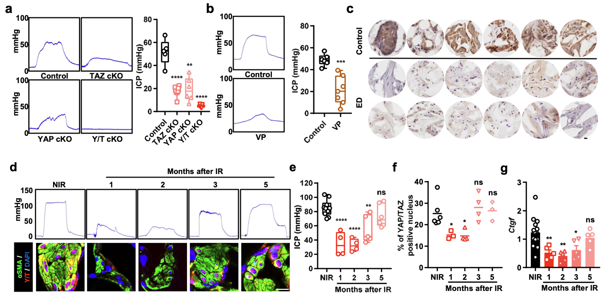 图二,YAP/TAZ在放射性损伤引起ED后勃起功能恢复中的作用