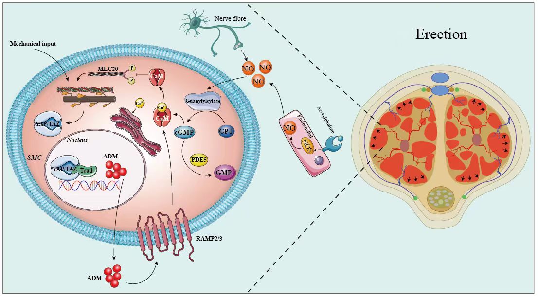 2023年6月23日,苏州大学放射医学与辐射防护国家重点实验室、苏州医学院放射医学与防护学院畅磊教授课题组联合首都医科大学附属北京友谊医院许永德副主任医师以及长春中医药大学的杨勇教授在Nature Communications 上发表了题为“The Role of Mechano-regulated YAP/TAZ in Erectile Dysfunction”的研究论文,报道了生物力学因素如何调控男性阴茎勃起,并发现mechano-YAP/TAZ-ADM的信号通路对于ED的调控独立于经典的PDE5i通路,为PDE5i响应的ED患者提供新的治疗思路。