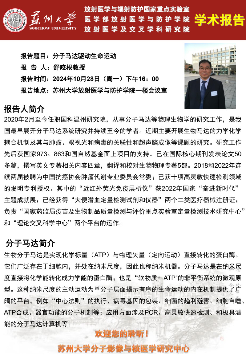 先进放射医学论坛(2024年第21期)——分子马达驱动生命运动