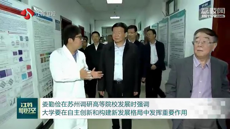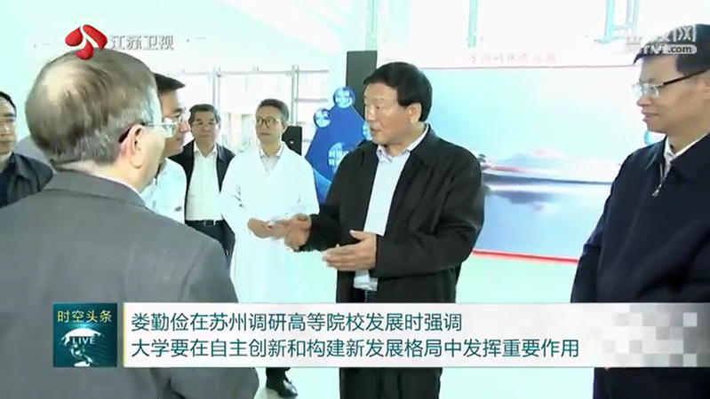 10月10日上午,江苏省委书记娄勤俭来到苏州大学,调研学校改革发展情况。随后,在苏大独墅湖校区与国重室科研人员进行了深入交流。