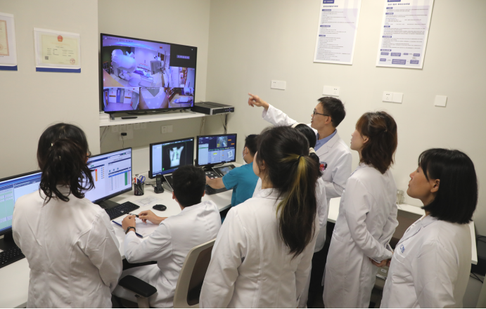 随后,同学们走进医院放疗科,体验“一日见习”。负责的袁太泽老师表示:整个放疗治疗过程,涉及肿瘤放疗医师、放疗物理师、放疗技师等几个专业。其中,放疗医师的工作决定了 “打哪里、打多少”;放疗物理师的工作则决定了是否能“打得狠”;放疗技师的工作则决定了是否能“打得准”。具备丰富临床实践经验的医师、技师以及物理师们带领同学们体验了治疗计划制定各个环节,一天的学习,加深了同学们对放射治疗的认识,有助激发未来在学业或择业方面的新思路。