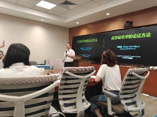广州泰和肿瘤医院院长钱朝南教授带领同学们参观了医院门诊、住院部、质子中心、影像中心等。钱朝南教授表示:“广州泰和肿瘤医院拥有先进的放疗设备、影像设备及实力雄厚的技术团队,而同学们就读的专业亦与影像、放疗、医学物理密切相关,期待他们在此次力行课堂中有所收获”。钱朝南教授进行了《医学研究中的论证方法》的报告,与同学们探讨科研中的思维方式。医院首席质子物理师李左峰教授还为同学们介绍了《质子治疗的原理及应用》并与同学们进行了热切交流。