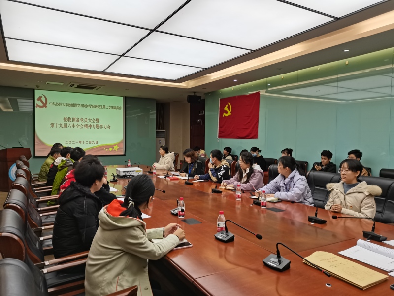 2021年12月9日,学院研究生第二党支部在医学楼一楼会议室成功举行了十九届六中全会精神专题学习会暨吸收预备党员大会。研究生第二党支部全体党员参加本次活动,活动由党支部书记彭蓉主持。