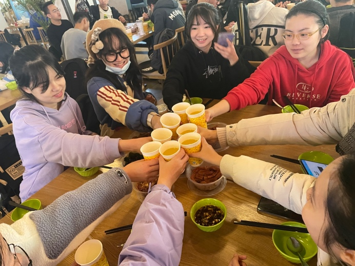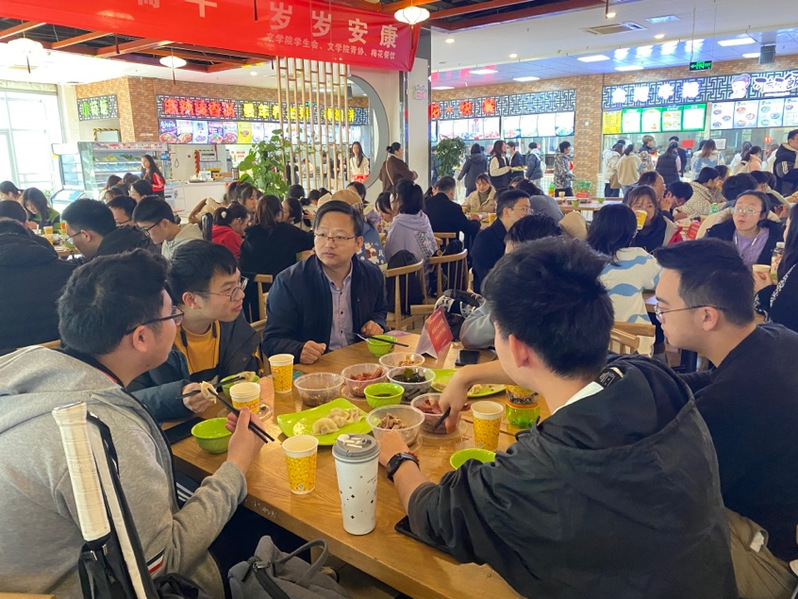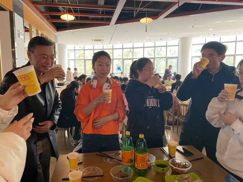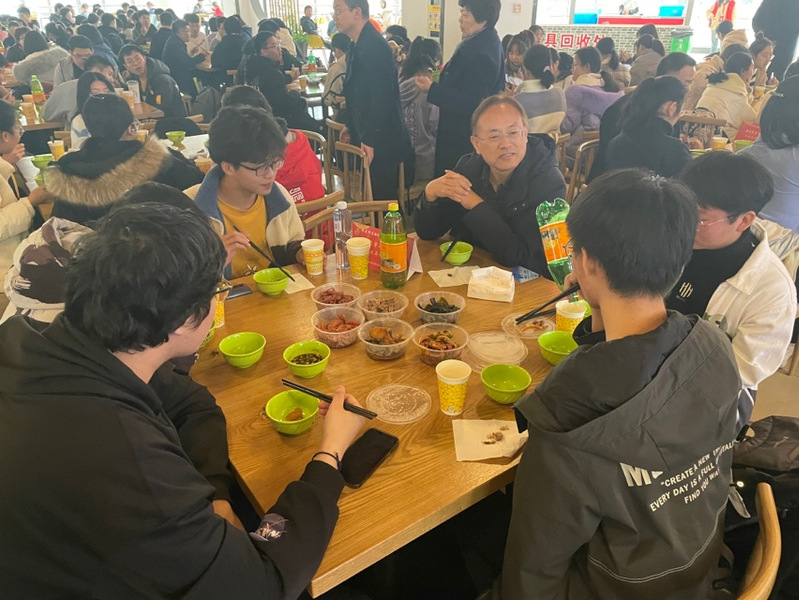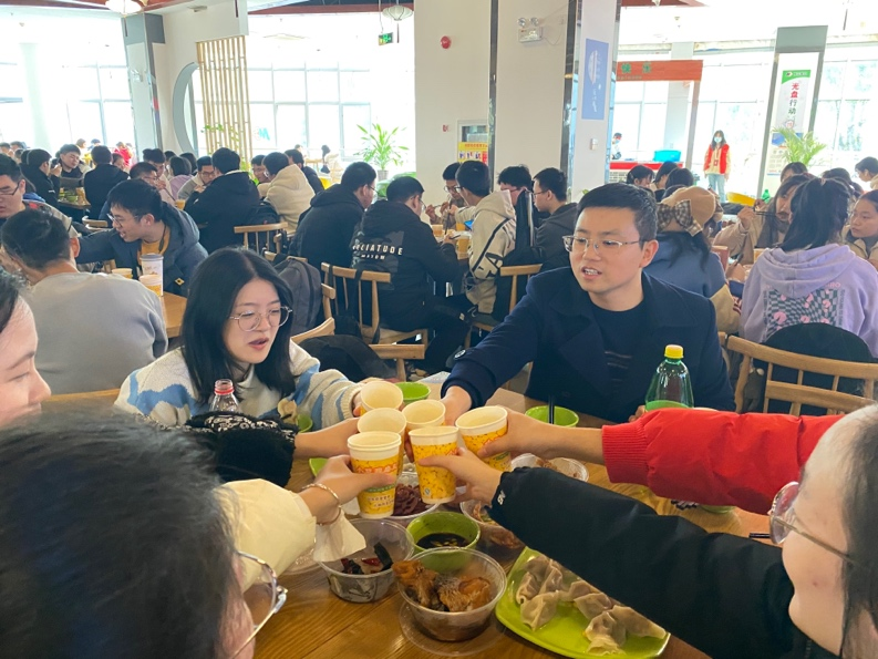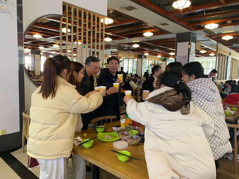 冬至午宴上,各位“萌新”与导师分享着自己一个学期以来成长的点点滴滴。繁杂的学业、多彩的社团、舒适的宿舍、故土的习俗,都是“萌新们”与导师分享的点滴。分享完本学期的成长,同学们还畅谈了自己对未来的憧憬、对未来的期待。同学们分享后,导师们也对同学们分享起自己的人生经验。觥筹交错间,师生们忘却身份,如家人般聊起了自己的所见所闻。