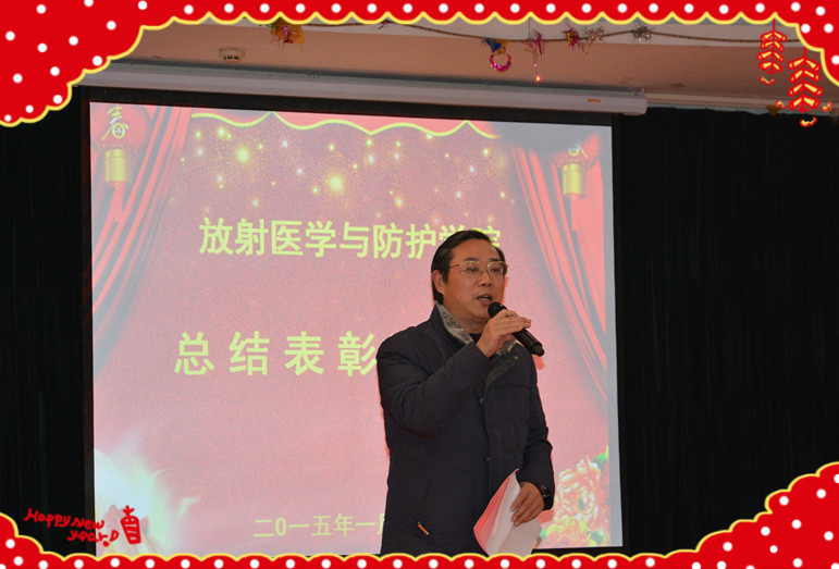 1月23日下午,医学部放射医学与防护学院年度工作总结表彰大会暨新年联欢会在独墅湖校区医学楼三楼活动中心隆重举行。参加本次大会的有苏州大学副校长熊思东、医学部党工委书记邹学海、放射医学与防护学院院长柴之芳院士、党委书记曹建平、副院长许玉杰、放射医学及交叉学科研究院副院长周如鸿、特聘教授周光明、兼职教授梁旻、中科院高能物理研究所高学云研究员以及学院的全体教师及研究生。大会由书记曹建平主持。