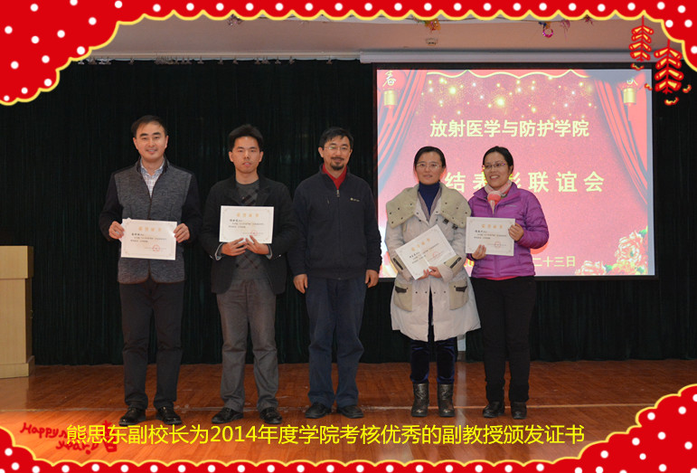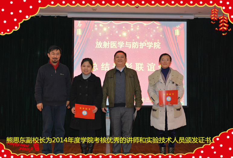 接着,曹建平书记宣读了2014年度考核优秀的教授、副教授、讲师、实验技术人员和优秀党员名单,并且请熊校长和邹书记为上述考核优秀的教师颁奖,以激励大家不断努力。希望经过3-5年的努力,将苏州大学放射医学做到国内一流、国际知名。