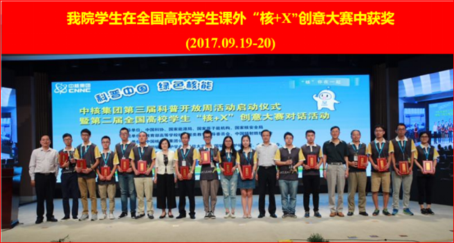 2017年9月19日-20日,实验室学生在全国高校学生课外“核+X”创意大赛中获奖。