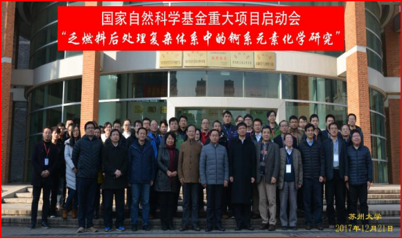 2017年12月21日,国家自然科学基金重大项目“乏燃料后处理复杂体系中的锕系元素化学研究” 项目启动会成功召开。