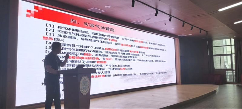 聂晶就实验室基础设施及特种设备安全进行讲解,强调了设备使用、用水火电的安全问题,提醒同学们发现问题及时上报检修,将防范风险做在前头。