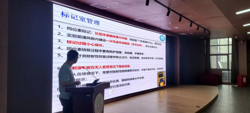 刘汉洲和王广林围绕活性区使用规范及辐射安全向大家介绍了放射性活性区实验室管理办法、非密封放射物质安全管理规范、放射性废物管理规定等涉及辐射安全的实验室规范管理,尤其给同学们强调了放射性动物实验的动物房管理。