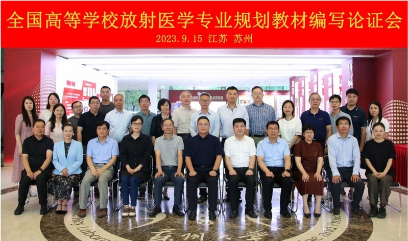 2023年9月15日,由人民卫生出版社主办、苏州大学苏州医学院放射医学与防护学院承办的全国高等学校放射医学专业规划教材编写论证会苏州召开。人民卫生出版社党委常委、副总编辑朱双龙,医学教育中心主任邬洁、人民卫生电子音像出版社副总经理董良广,医学教育中心编辑王暄参会。出席会议的嘉宾有吉林大学公共卫生学院放射医学系主任金顺子教授、南华大学公共卫生学院何淑雅教授、南方医科大学公共卫生学院放射医学系主任周美娟教授、山东第一医科大学预防医学科学学院常务副院长朱建国教授、福建医科大学肿瘤临床医学院放疗科主任吴君心教授、南京医科大学附属肿瘤医院吴俚蓉教授、温州医科大学公共卫生与管理学院胡步荣教授、新乡医学院第四临床学院副院长白国强教授、常金龙主任、安徽医科大学基础医学院放射医学系主任赵烨教授、包头医学院医学技术与麻醉学院放射医学系主任张竹强教授、苏州大学附属第一医院放疗科主任秦颂兵教授、附属第二医院肿瘤职业病科卞华慧副主任医师。苏州大学教务处方亮处长、苏州医学院龚政副院长、钟慧副院长、学院王成奎书记、曹建平常务副院长、周光明副院长、各课程负责人及骨干师资代表参加了本次会议。会议由曹建平主持。