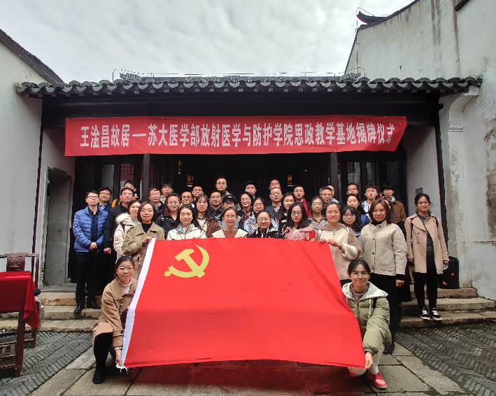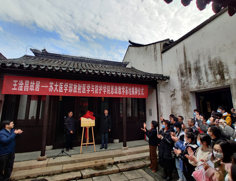 2020年11月28日上午,我院师生代表30余人来到了位于常熟市支塘镇南街44号的王淦昌先生故居,瞻仰和学习先生的严谨治学的科学家精神和以身许国的爱国精神,并见证了我院课程思政教学基地揭牌仪式。参加仪式的有苏州大学党委常委、副校长蒋星红、支塘镇政协工委主任周大利、副镇长汤炜、社会治理和社会事业局副局长郁新、苏州大学医学部副主任龚政、放射医学与防护学院党委书记王成奎、常务副院长曹建平、副院长周光明、院长助理俞家华。仪式由汤炜副镇长主持。
