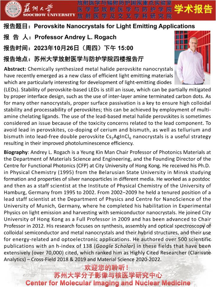 先进放射医学论坛(2023年第32期)——Perovskite Nanocrystals for Light Emitting Applications