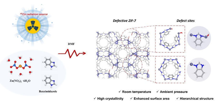 图一 伽马射线辐射合成富缺陷ZIF-7框架材料