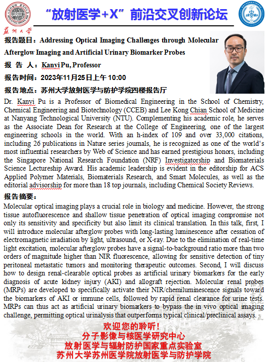 先进放射医学论坛(2023年第39期)——Addressing Optical Imaging Challenges through Molecular Afterglow Imaging and Artificial Urinary Biomarker Probes