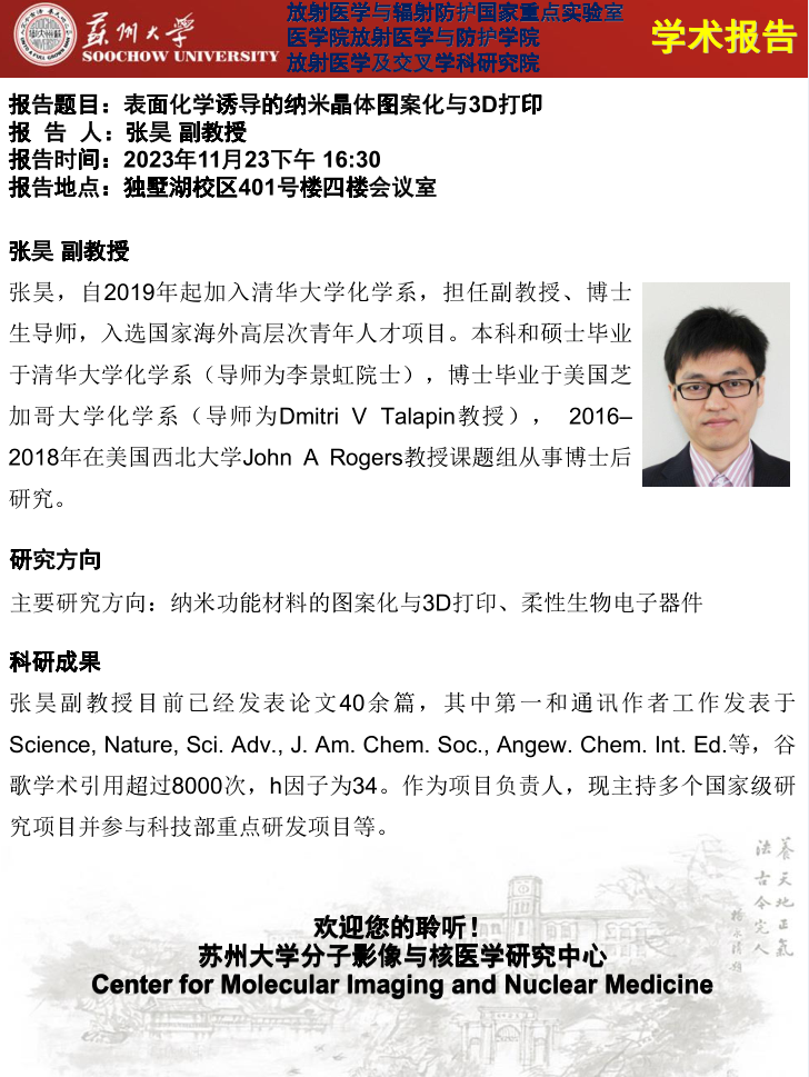 先进放射医学论坛(2023年第43期)——表面化学诱导的纳米晶体图案化与3D