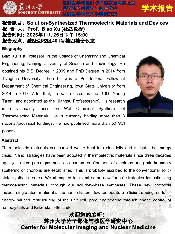 先进放射医学论坛(2023年第46期)——Solution-Synthesized Thermoelectric Materials and Devices