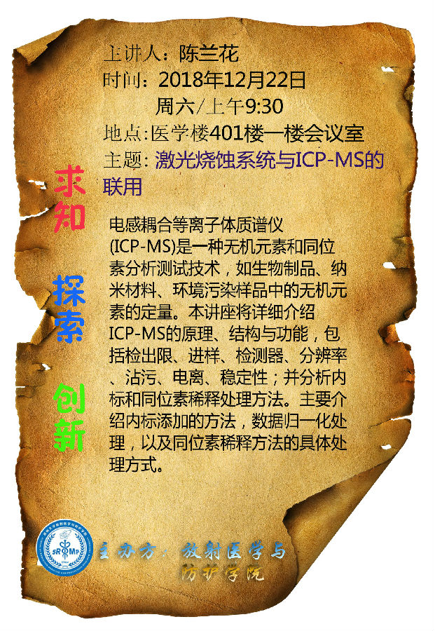 放医学院2018年秋季第二课堂预告(激光烧蚀系统与ICP-MS的联用)