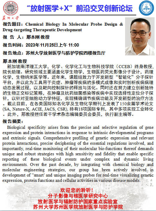 先进放射医学论坛(2023年第47期)——Chemical Biology In Molecular Probe Design & Drug-targeting Therapeutic Development