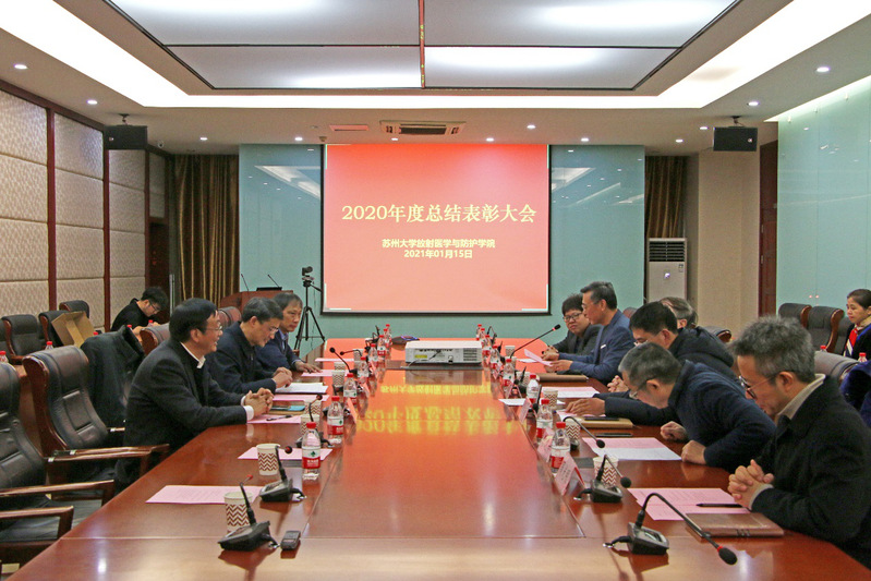 1月15号下午,2020年放射医学与防护学院年度总结表彰会议在医学楼401栋一楼会议室召开。校党委副书记邓敏,医学部党工委书记邹学海、常务副主任徐广银,学院院长柴之芳院士,院党委书记王成奎、执行院长高明远、常务副院长曹建平、副院长王殳凹、副院长周光明和学院教师代表出席会议。采取线上线下结合的方式,会议由高明远主持。