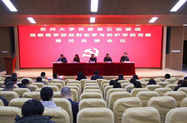 根据校党委第五轮巡察工作部署,3月3日上午,第五巡察组在独墅湖校区医学楼四楼报告厅召开巡察医学部放射医学与防护学院党委情况反馈会议。校党委巡察工作领导小组副组长、校党委常委、纪委书记、监察专员芮国强,校党委第五巡察组组长、校党委常委、副校长张晓宏,校党委第五巡察组副组长、纳米科技学院党委书记洪晔,巡察组其他成员参加会议,放射医学与防护学院党政领导班子、全院教职工参加了会议。会议由学院党委书记王成奎主持。