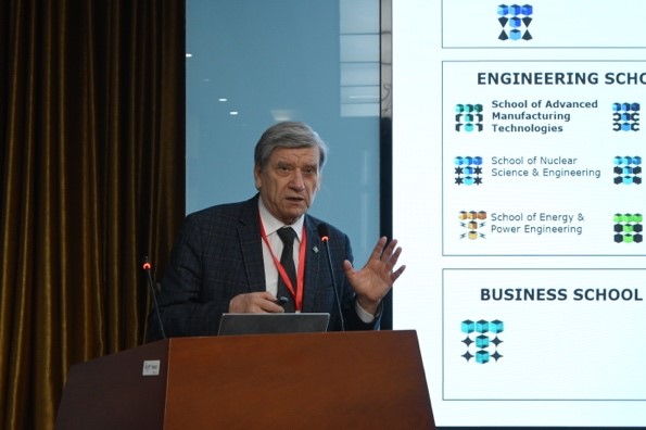 王殳凹致辞,他简要介绍了学院“十四五”期间发展的情况,同时结合“十五五”教育科技人才一体化的要求,简述了核技术应用及交叉学科发展的潜力,希望通过这样的学术会议进一步加大交流和研讨,推动学术创新和成果转化。