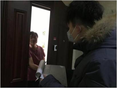 我的第一份工作是协助社区的辖区主任和民政局的工作人员进行入户排查和宣传工作。我被分配到的辖区内有1400余户居民,因为该辖区多为新小区,人口流动性大,居民信息不齐全。我们按照计划需要每天初次排查出自己负责的楼栋,对每户居民的信息进行采集,外来人口进行登记劝导,为隔离人员进行购物。对前期未成功入户的居民再次入户寻访,与物业沟通寻找新住户的联系方式。走在东北的雪地上,大家互相会调侃:“今天我们可能又要占领朋友圈运动榜”。另外,我还给社区的一些抗“疫”做宣传工作,制作了抗“疫”日志H5一篇。