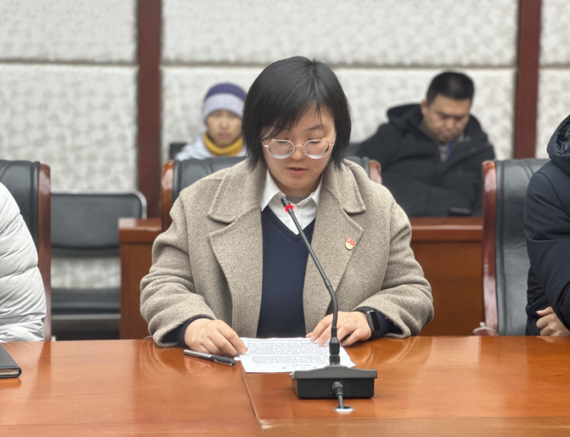 预备党员马付银同志转正申请环节,提交了自己的转正申请书,对预备期一年内思想工作和生活上的基本状况进行了介绍和总结,王艳龙同志宣读了党支部对她的预备期内的考察等情况,马付银对今后转入教学科研岗的学生教学与进一步的科研工作设想等向大家进行了表态和汇报。