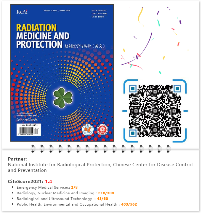 Radiation Medicine and Protection(以下简称RMP)由中国科协主管、中华医学会主办,是中国疾病预防控制中心辐射防护与核安全医学所、苏州大学放射医学与防护学院暨放射医学与辐射防护国家重点实验室联合创办的同行评议英文刊,首次喜获 CiteScore 引用分,为1.4。