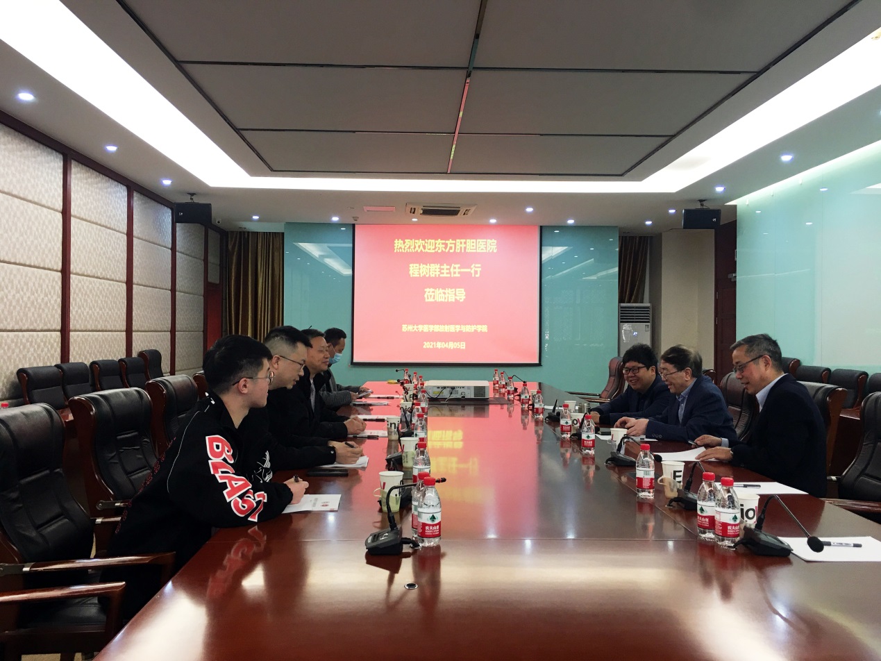柴之芳院士代表苏大放医对上海东方肝胆医院程树群主任一行表示热烈欢迎,并简要介绍了国重室。程树群主任也向大家介绍了东方肝胆医院门静脉癌栓诊疗中心的临床及科研工作。