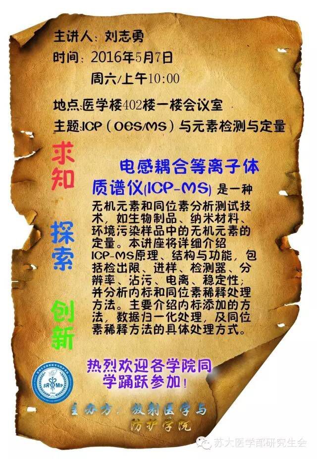 放射学院2016年春季第二课堂预告(ICP与元素检测与定量)
