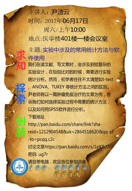 放射学院2017年春季第二课堂预告(实验中涉及的常用统计方法与软件使用)