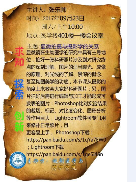 放医学院2017年秋季第二课堂预告(显微拍摄与摄影学的关系)
