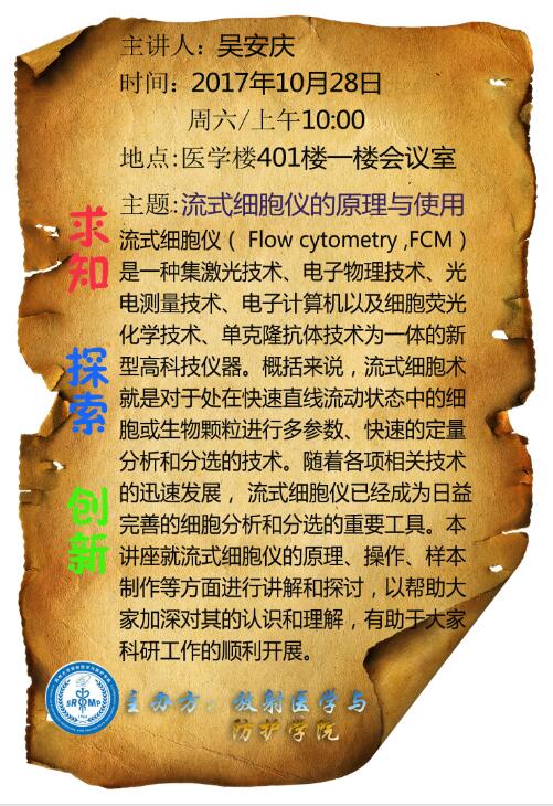 放医学院2017年秋季第二课堂预告(流式细胞仪的原理与使用)