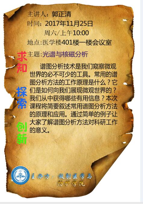 放医学院2017年秋季第二课堂预告(光谱与核磁分析 )
