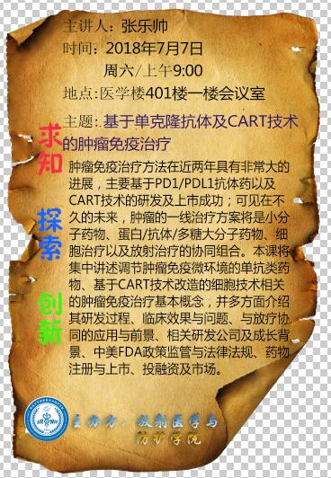放医学院2018年春季第二课堂预告(基于单克隆抗体及CART技术的肿瘤免疫治疗)