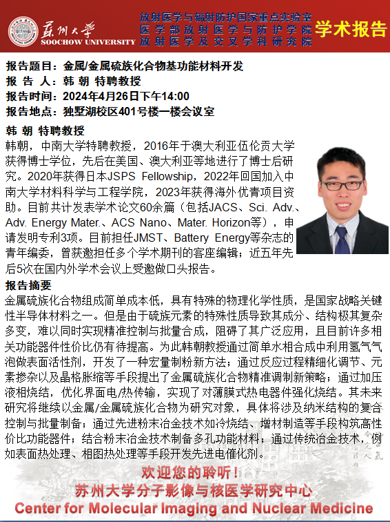 先进放射医学论坛(2024年第6期)——金属/金属硫族化合物基功能材料开发