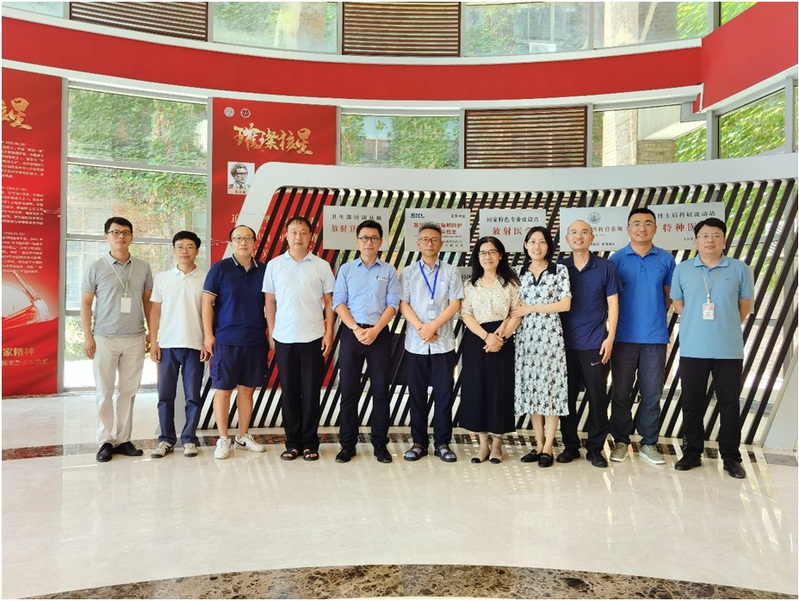 交流座谈会上,曹建平常务副院长、周光明副院长介绍了学院的学科建设、师资队伍、科研团队、学生就业等情况,以及正在规划建设的“中能多粒子超导医学研究加速器”。中山大学中法核工程与技术学院院长助理王志斌副教授介绍了学院的建设历程、中法合作办学、学科建设、人才培养及科学研究等方面的情况;付琪镔副研究员和黄土琛副研究员分别介绍了学院在放射医学和核探测方面的研究工作。双方一致认为,核技术在医学的应用是核技术及应用的重要内容,也是贯彻“面向人民生命健康”国家战略导向的重要保障。双方就未来科研合作、人才培养、学生实践和就业等方面深化合作达成了共识。